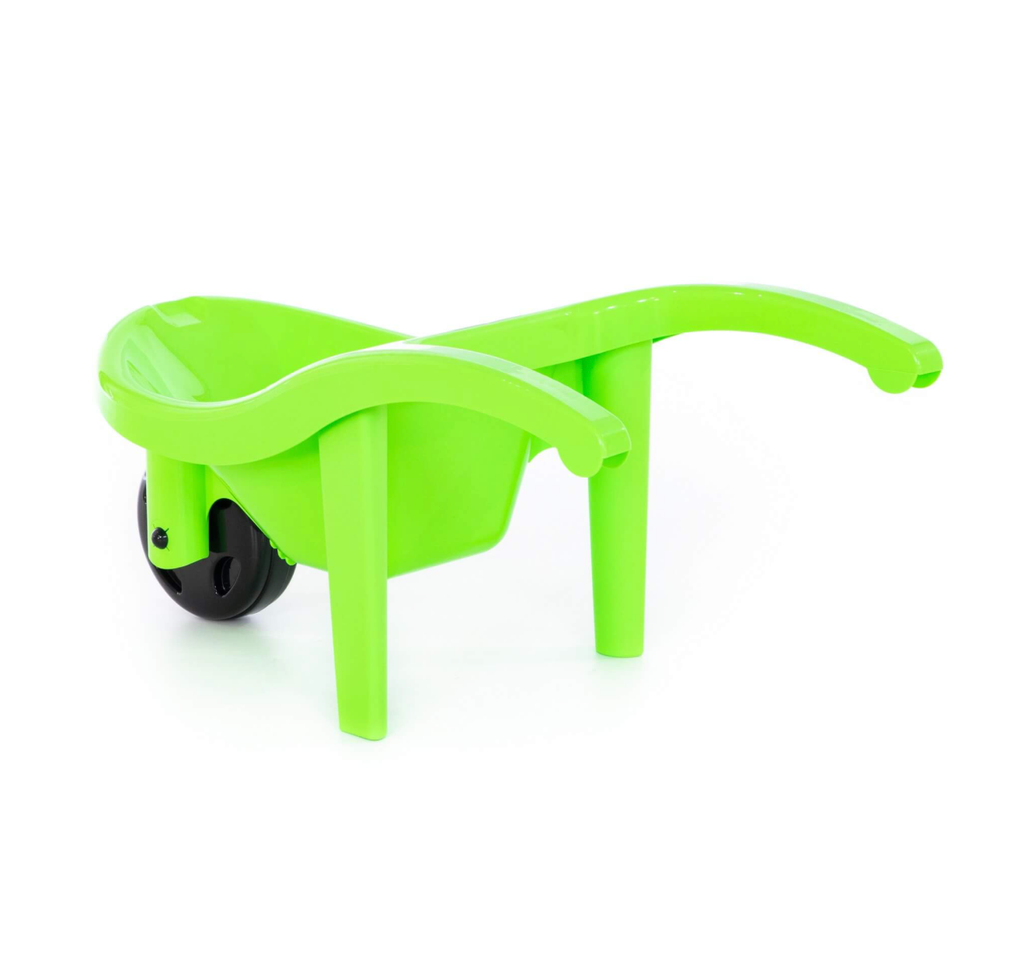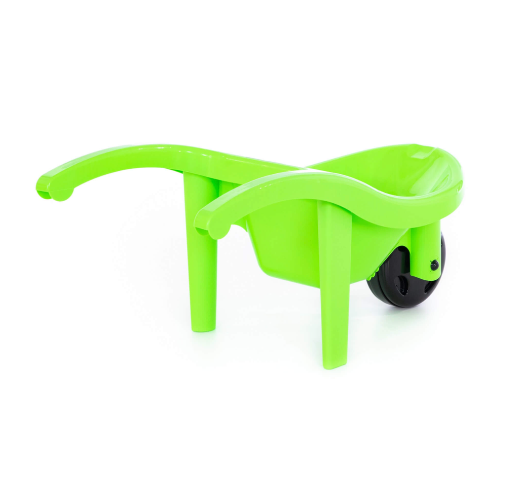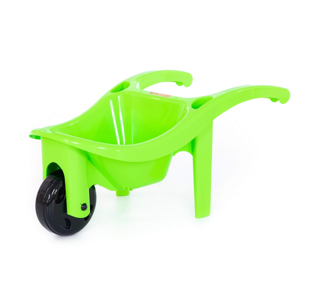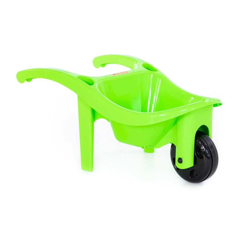 Тачка настолько реалистична, что малыш во время игры почувствует себя настоящим садоводом. Кроме того, в тачке можно перевозить другие игрушки. С ней ребёнок сможет проводить много времени на свежем воздухе.