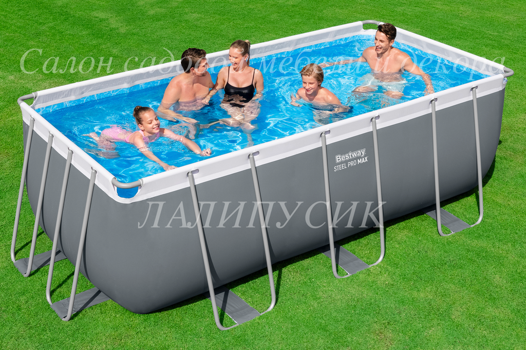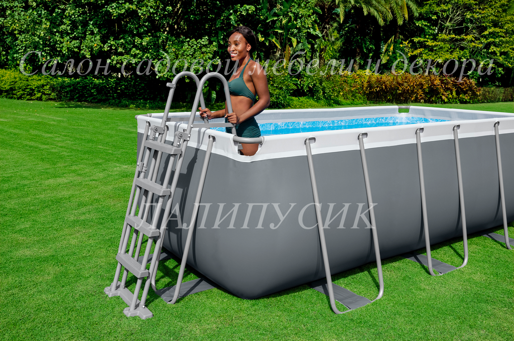 Каркас бассейна выполнен из нержавеющей стали, надежно фиксирует чашу и способен выдерживать максимальные нагрузки. Чаша из трех слоев прочного материала устойчива к ударам, растягиванию и воздействию солнечных лучей. Бассейн оснащен фильтр-насосом, который очищает воду от всевозможных загрязнений. В комплект входит металлическая лестница.