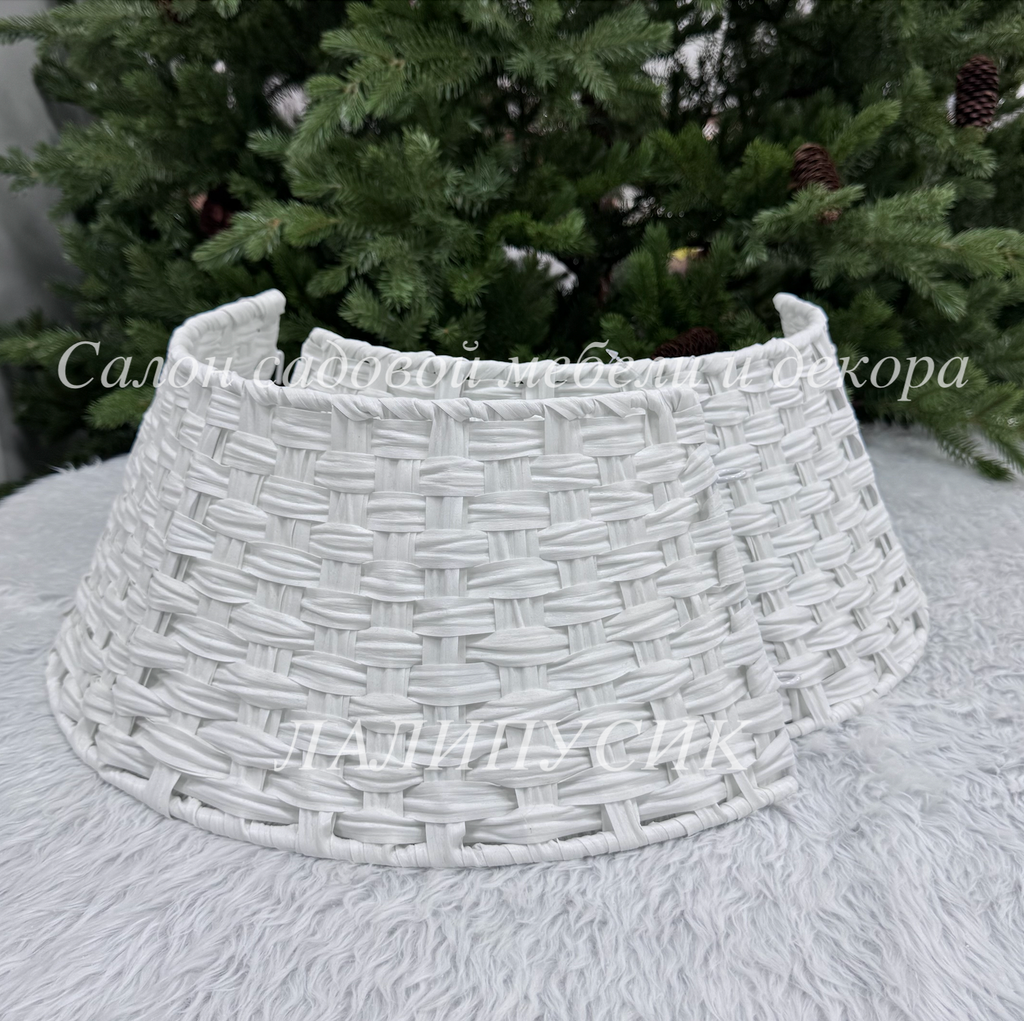 Корзина под елку из искусственного ротанга состоит из двух частей (половинок), соединятся с помощью 2 крючков и колец на каждой части корзинки
