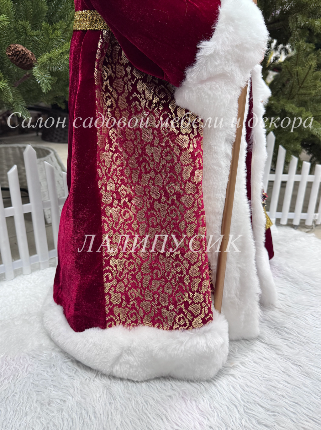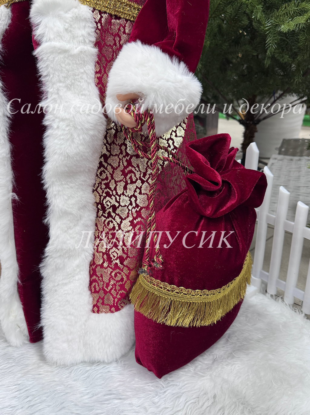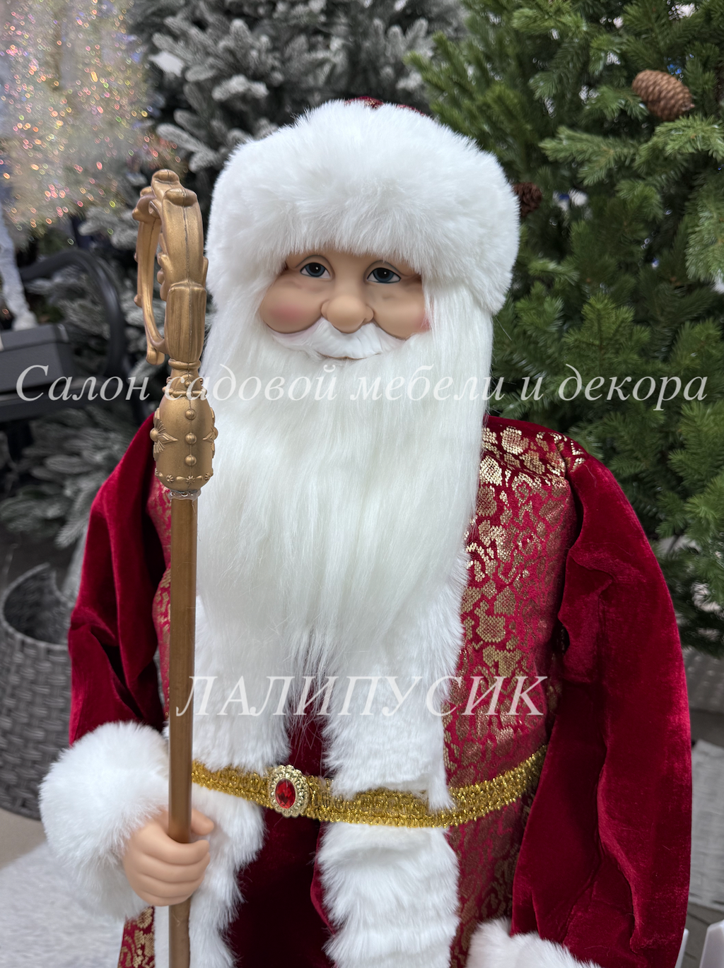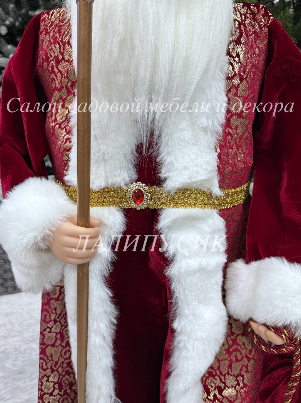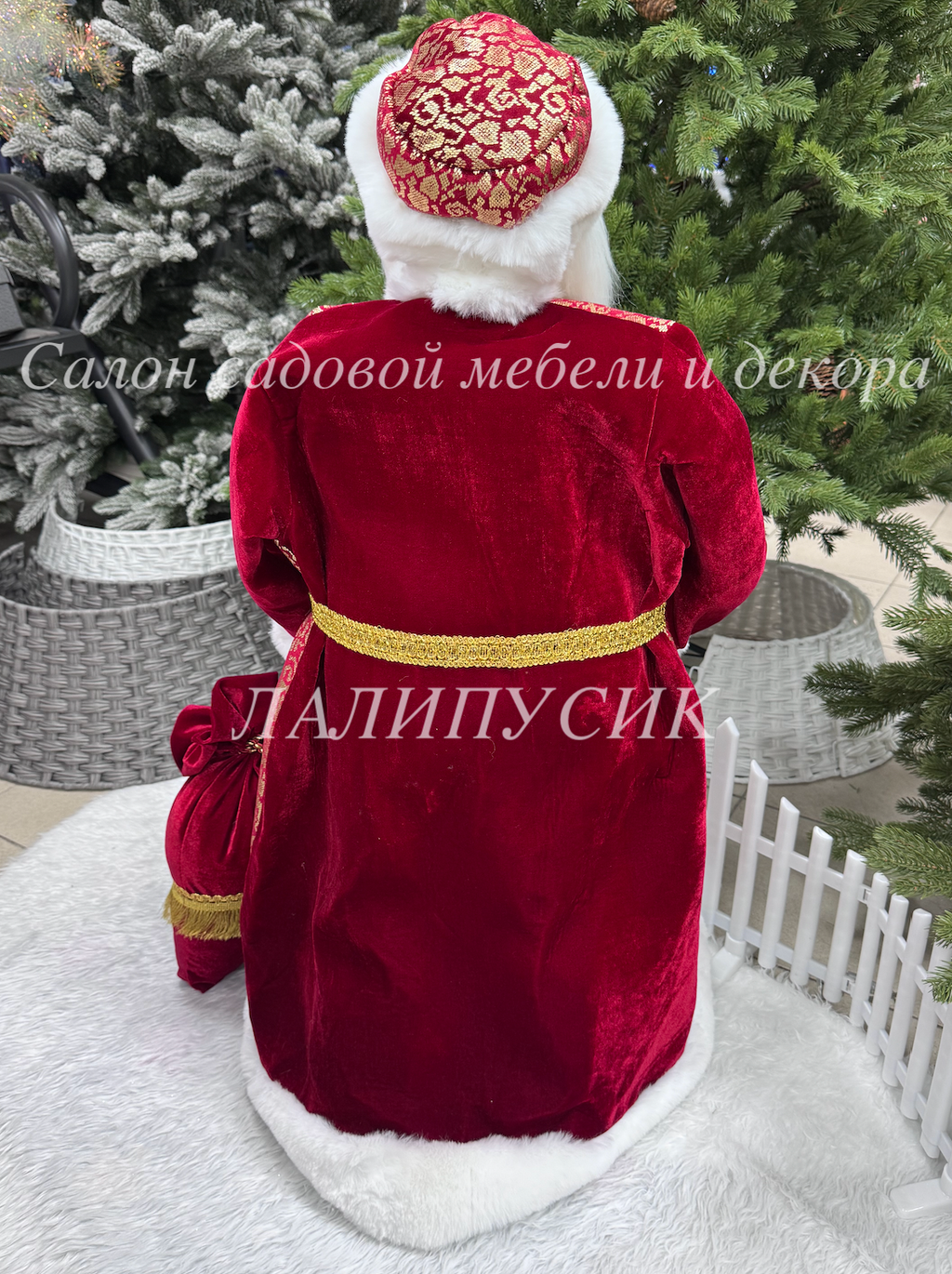 Новогодняя фигура под елку Дед Мороз - неотъемлемое украшение главных зимних торжеств. С ним праздник становится более ярким, красочным, веселым и волшебным. Без этого персонажа невозможно представить ни одну елку. С ним ассоциируются волшебство и подарки, сладости и веселье вокруг. Он станет главным украшением и символом чуда, завораживающим детей и взрослых на протяжении всех праздников. Сказочный персонаж впишется в праздничную композицию, дополнив ее у входа для встречи гостей, на подоконнике, столе или под елкой около подарков. Фигура выполнена в ярком цвете с множеством мелких деталей, за счет чего она удачно смотрится на фоне еловой или сосновой хвои.