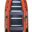 Комплект включает в себя 2 регулируемых жестких сиденья, которые крепятся к баллонам с помощью системы ликтрос/ликпаз. Также в комплекте предусмотрены мягкие накладки на 2 скамейки. Транец изготовлен из влагостойкой фанеры и прочно приклеен к баллонам с использованием ПВХ вставок. Он полностью ламинирован для защиты от воды и повреждений. В зоне крепления двигателя есть специальная накладка, предотвращающая износ транца.
