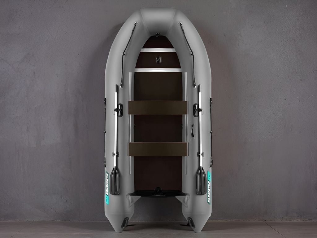 Дно — фанерный пайол с антискользящей насечкой с комплектом алюминиевых стрингеров. Самый удобный в использовании вид пола: его не надо просушивать, невозможно поцарапать или проколоть.