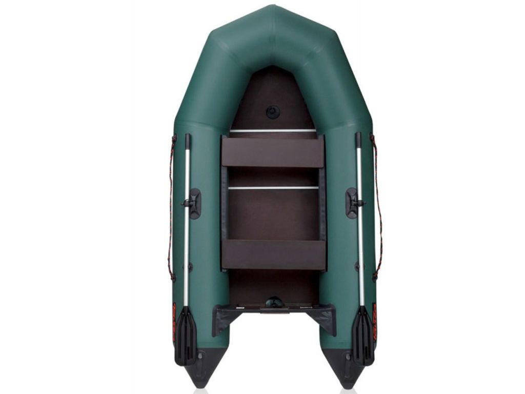 - Лодка выполнена из прочного и долговечного материала ПВХ плотностью 750 г/м², что гарантирует долговечность использования и устойчивость к механическим повреждениям.