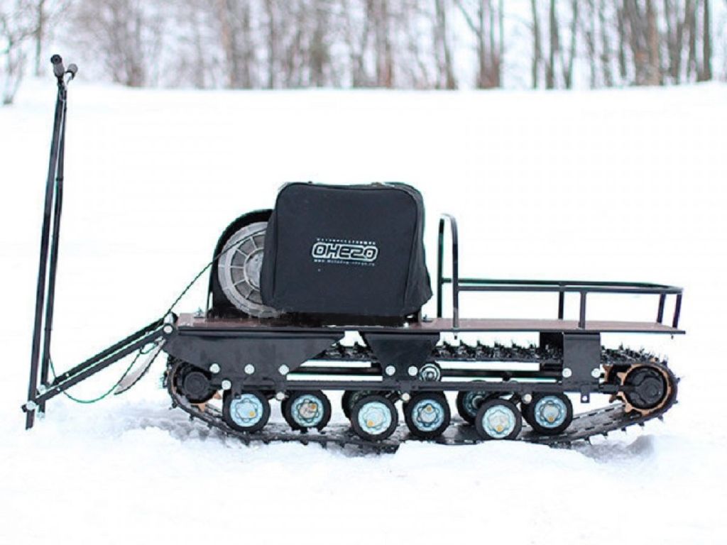 Всесезонный мотобуксировщик Онего 550 приспособлен для поверхностей, покрытых грунтом и льдом, а также глубокими сугробами, песком и т.д. Очень хорошо аппарат себя зарекомендовал в процессе движения по обледенелым и замерзшим рекам и озерам. За счет этого он пользуется высоким спросом у любителей зимней рыбалки. Вариатор На мотособаке Онего установлен вариатор Сафари, который обеспечивает постоянную передачу мощности от двигателя к колесам при изменении скорости. Он позволяет плавно регулировать скорость и обеспечивает оптимальное использование мощности двигателя. Двигатель Буксировщик оснащен 4-х тактным двигателем мощностью 11 л. с., достигающий скорость до 40 км/ч. Это позволяет быстро перевозить груз до 250 кг в санях и на специальной багажной площадке мотобуксировщика. Объем двигателя составляет 337 кубов. Технические особенности Мотобукс весит 80 кг, а размеры машины составляют 120 см в длину, 55 см в ширину и 72 см в высоту. Модель оснащена гусеницей с отличным сцеплением с поверхностью льда и снега шириной 550 мм. Гусеница в сочетании с катковой подвеской способна проходить спокойно по льду и даже по территории без снега. Подвеска На мотобуксировщике может быть установлена катковая подвеска, склизовая, а также подпружиненные склизы и пневмоколеса. Катковая подвеска обеспечивает лучшее сцепление с землей на разнообразных типах поверхностей, в то время как скользящая подвеска может обеспечить более плавное движение на неровной местности. Для разных условий можно устанавливать подходящую подвеску, что дает возможность пользования транспортом в течение всего года. Конструкция Катковая подвеска упрощена и не дает гусенице забиваться снегом. Также на данном мотобуксировщике установлены обрезиненные катки с сальниками и ведомая звезда, которая самоочищается от снега и льда. На мотобуксировщике также установлена настраиваемая рукоятка, регулируемая по высоте в зависимости от роста водителя. Гарантия Мы полностью уверены в качестве нашей продукции, поэтому мы предоставляем гарантию на 12 месяцев на эту модель мотобукса! Если вы заинтересованы, оставьте заявку на нашем официальном сайте, и мы свяжемся с вами для подробной консультации. Доставка В нашем интернет-магазине вы можете заказать доставку в любой регион России. Сроки поставки составляют от 3 дней, в зависимости от региона и условий.