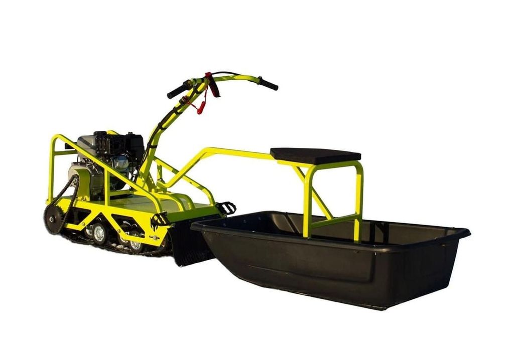 Мотобуксировщик оборудован бензиновым двигателем мощностью 6.5 л.с. и объемом 200 см³, что обеспечивает надежную работу в сложных зимних условиях и эффективную буксировку грузов.