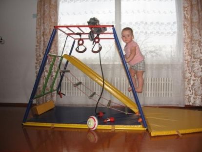 Детский спортивный комплекс "Ранний старт-стандарт" предназначен для детей от рождения до 6-7 лет. Уникальная разработка дает возможность вырастить крепкого, физически развитого малыша. Уже с рождения вы можете выкладывать ребенка на горку, используя её как трек Домана. Вторым этапом считается этап ползания: именно на горке малыш учится ползать, а затем и вставать, держась за перекладины лестницы.