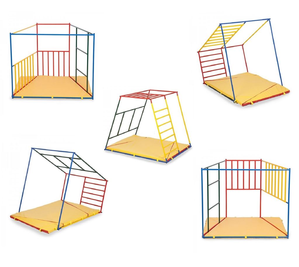 Комплектация: каркас (наклонная шведская стенка из семи ступенек, лестница "Окошки" с большими расстояниями между ступенями, рукоход на четыре ступеньки - в верхней части каркаса),