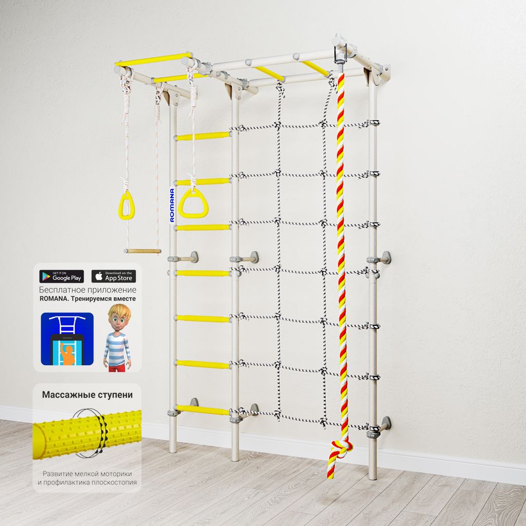 Комплектация: канат, кольца, трапеция, сетка для лазания