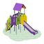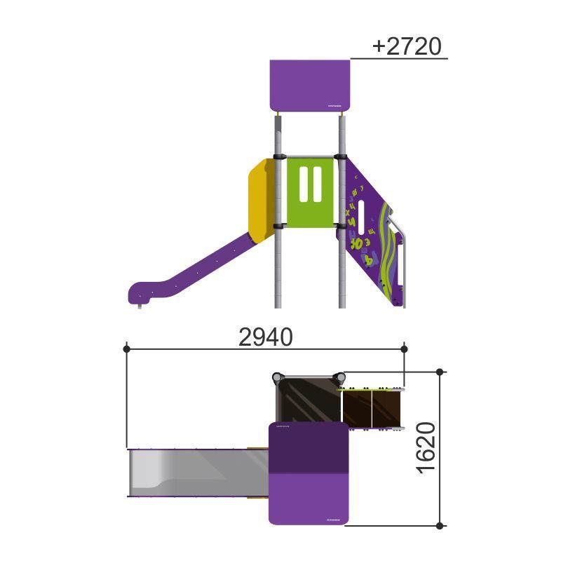 Небольшой игровой домик с горкой и крышей для детских игровых площадок. Для малышей, которые впервые знакомятся с площадками. Позволяет детям развивать координацию и ловкость.