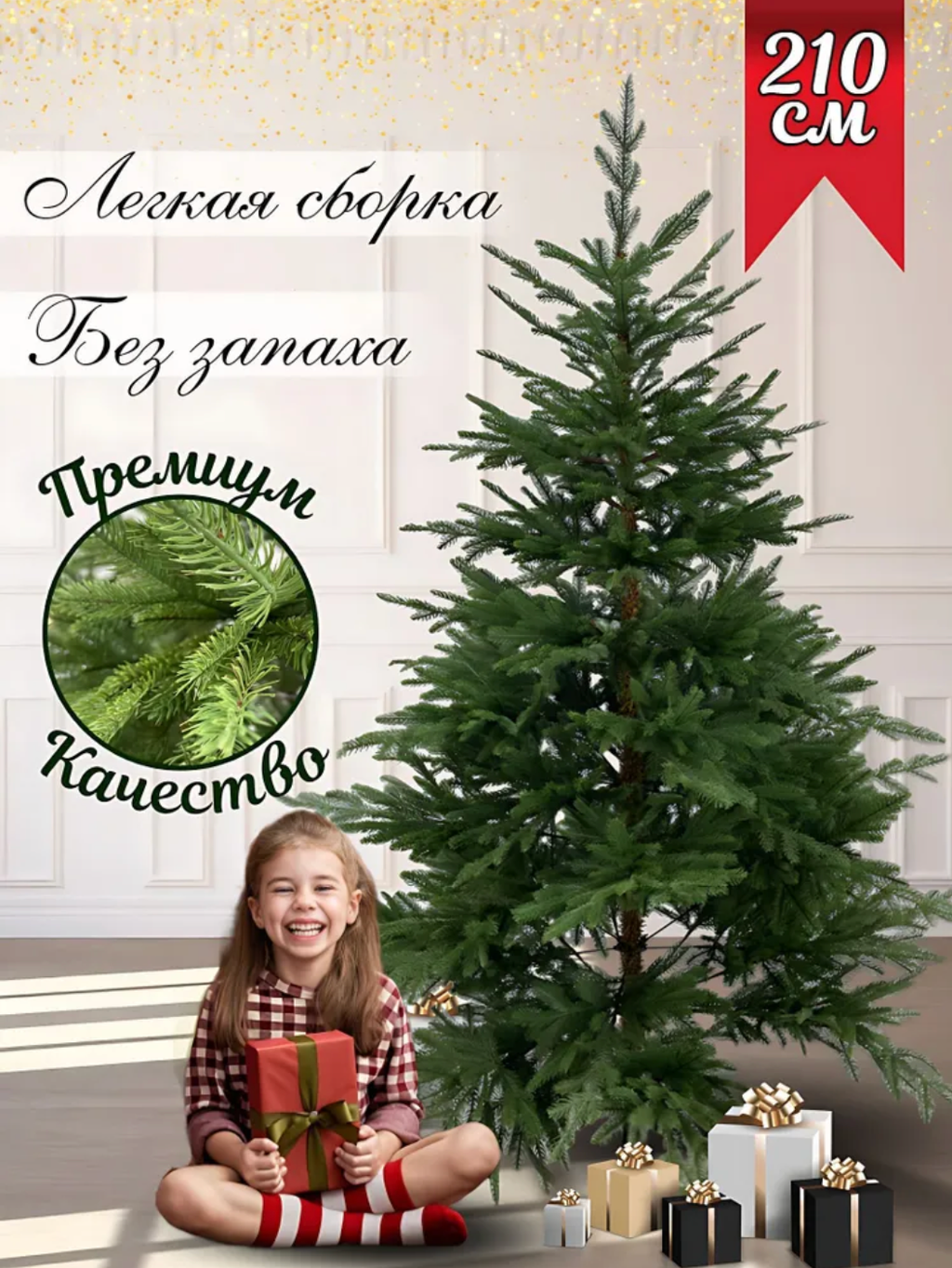 Пушистая искусственная ель, 210 см. Литая!