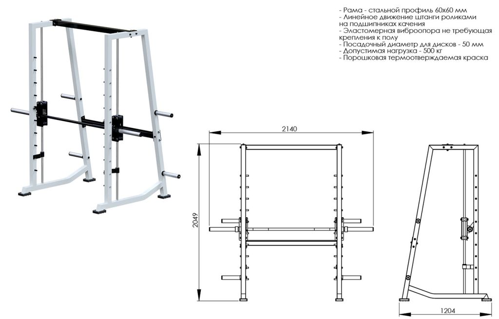 • Благодаря стабильному положению штанги сохраняется траектория движения, что позволяет заниматься на тренажере без страховки.