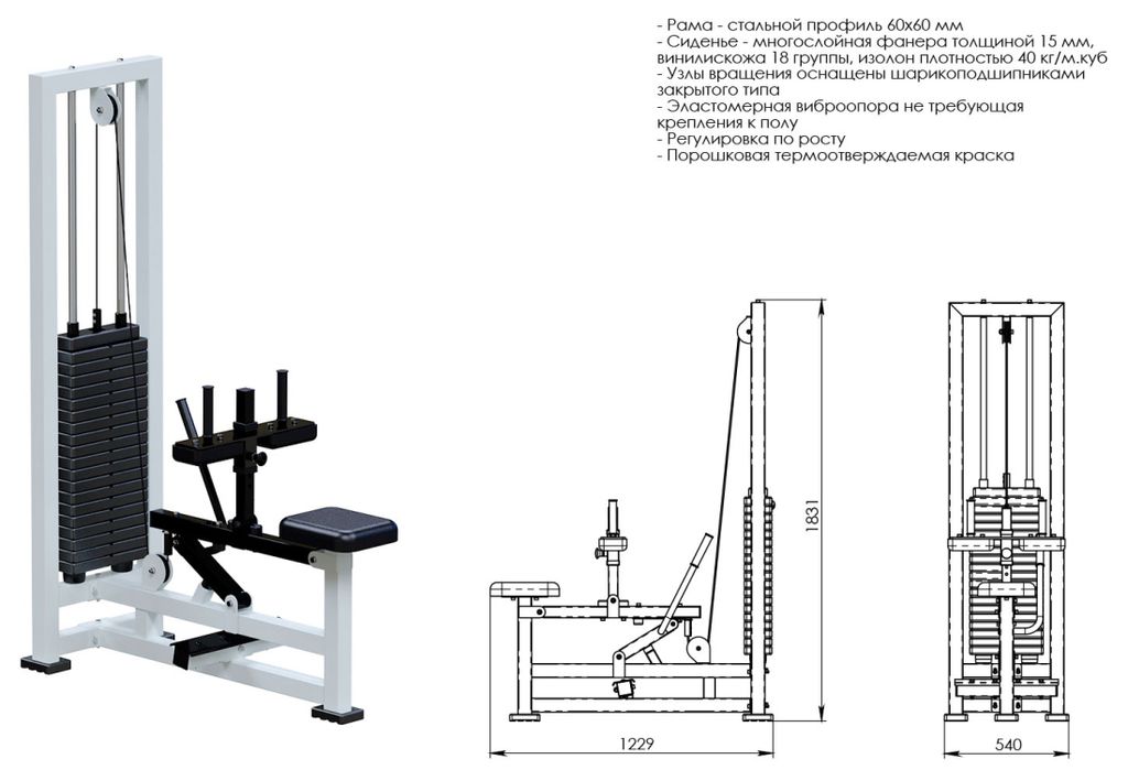 - Конструкция тренажера изготовлена из стального профиля 60х60мм, в изделии используется конструкционный профиль толщиной 2 и 3мм в зависимости от прилагаемой нагрузки;