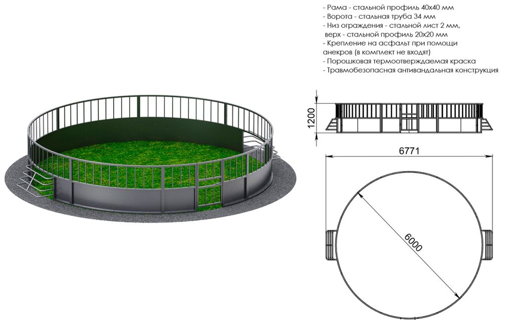 - Низ ограждения – стальной лист 2мм, верх – сетка штрек;