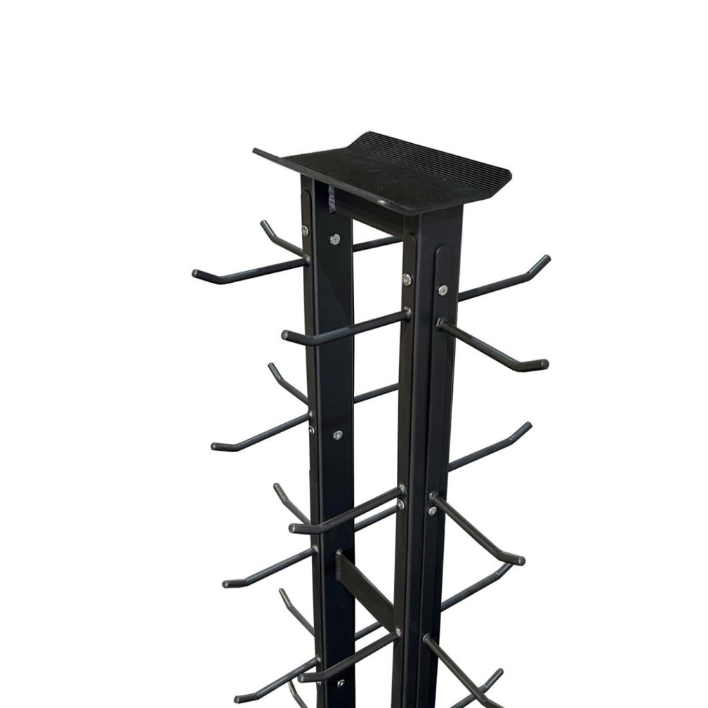 Стойка для хранения рукояток и аксессуаров 5409 - это подставка, позволяющая компактно складировать имеющиеся в тренажерном зале рукоятки от тренажеров, ремни и ремешки, манжеты для ног, эспандеры, замки для грифов, накладки и утяжелители.