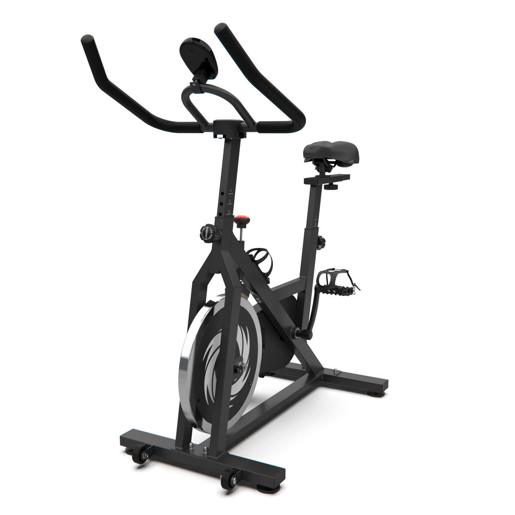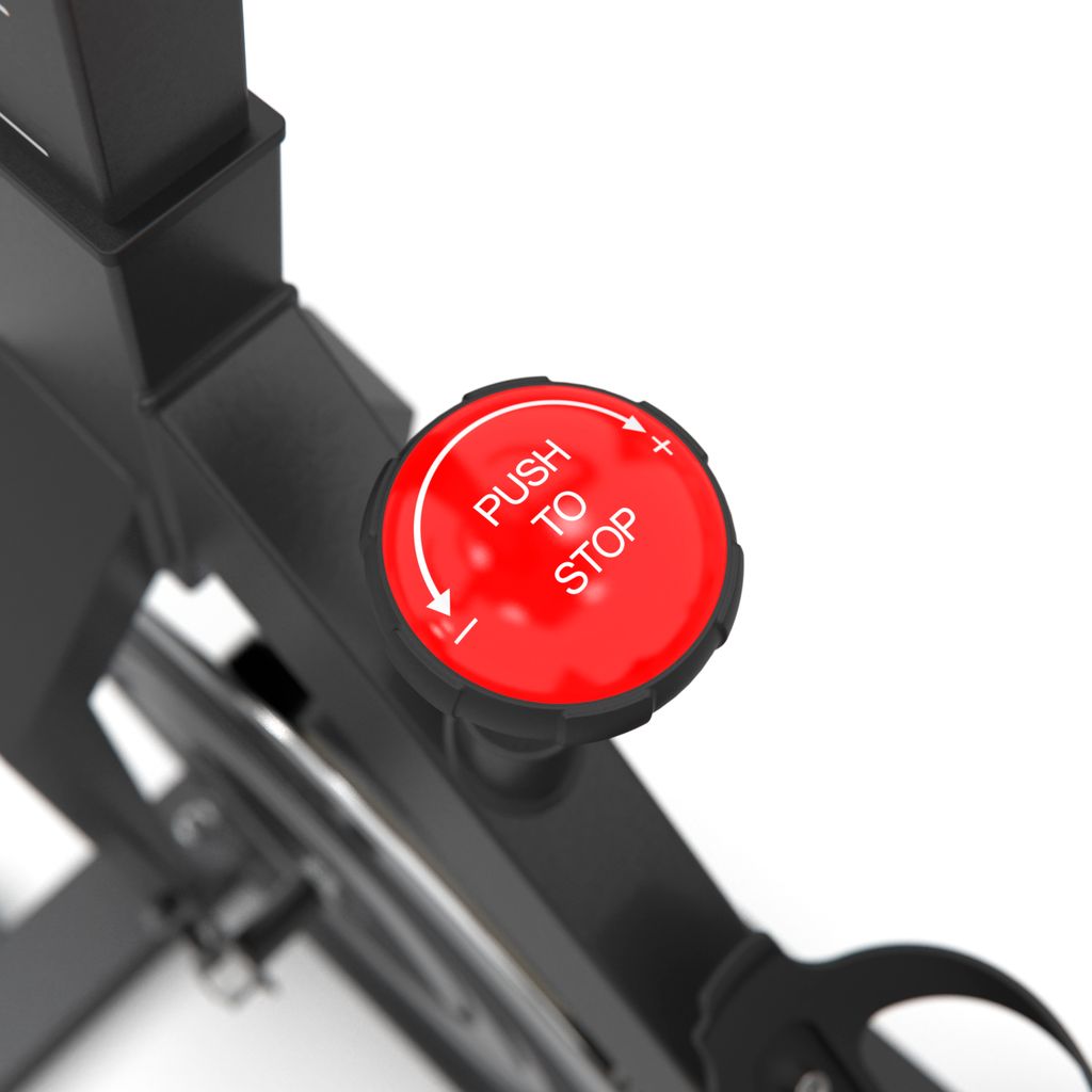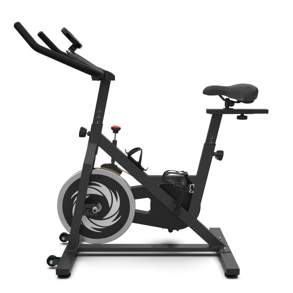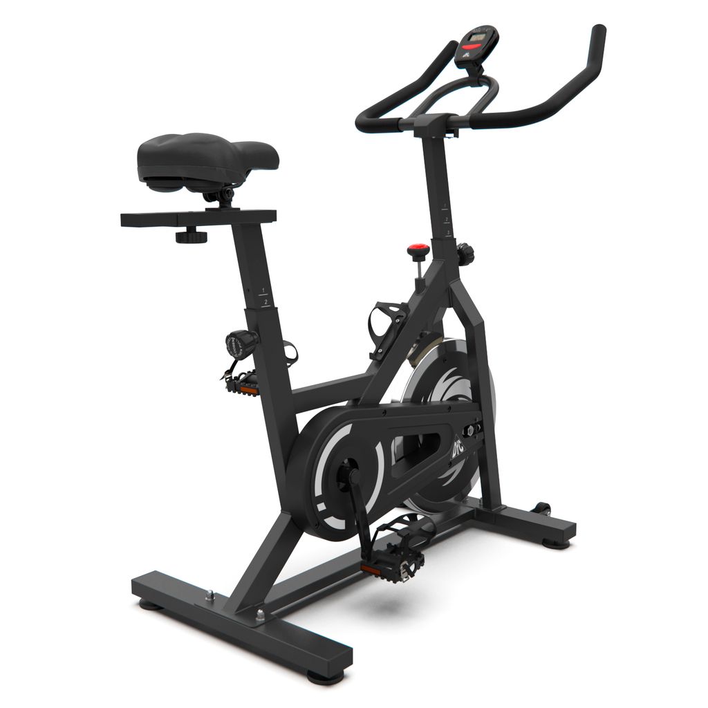Спин-байк оснащен маховиком весом 15 кг и колодочной системой нагрузки. Регулировка нагрузки происходит механически и использует бесступенчатую систему с множеством уровней нагрузки. Таким образом, вы можете выбрать подходящий уровень нагрузки для своих потребностей.
