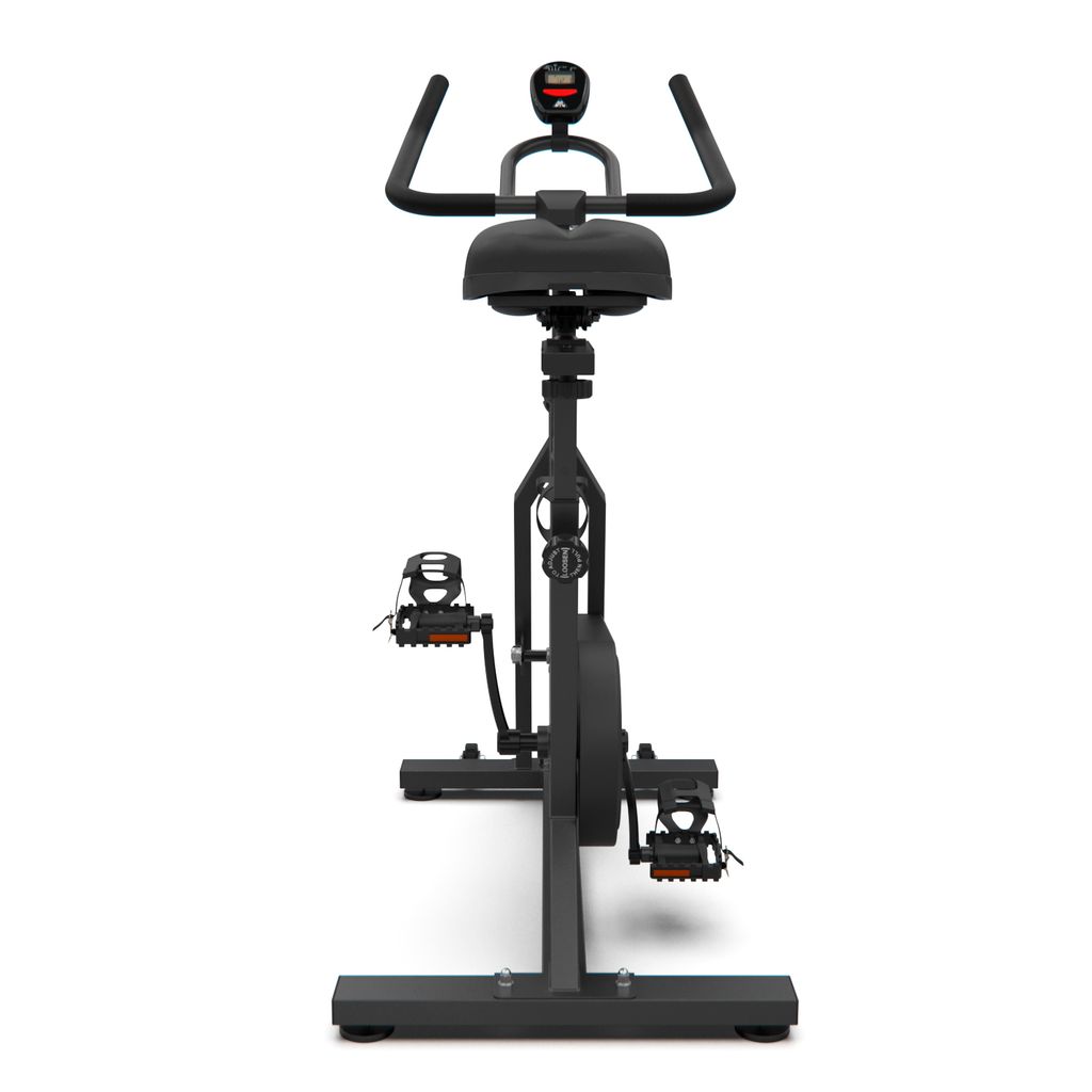 Спин-байк имеет трехкомпонентный педальный узел и размер в рабочем виде составляет 113 х 49,5 х 120 см. Монохромный LCD дисплей позволяет легко читать данные на консоли, а транспортировочные ролики и компенсаторы неровности пола обеспечивают удобство в использовании и хранении.