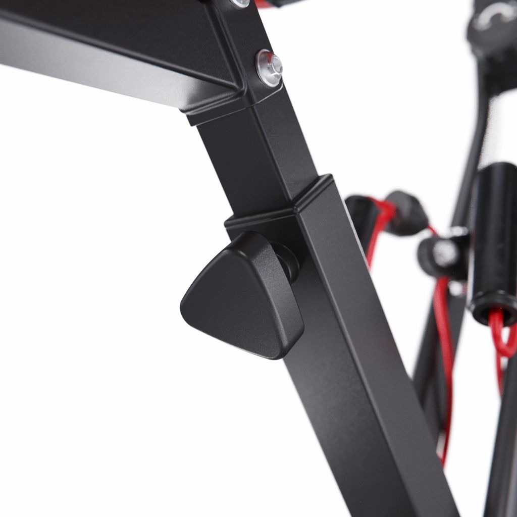 Благодаря складной конструкции тренажер легко хранить даже в небольших помещениях. В сложенном виде его габариты составляют 48 × 58 × 133 см. Встроенные транспортировочные ролики позволяют без усилий перемещать его по комнате, а компенсаторы неровностей пола обеспечивают устойчивость на любой поверхности.