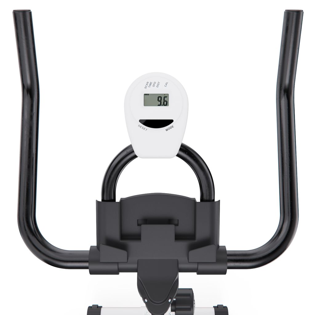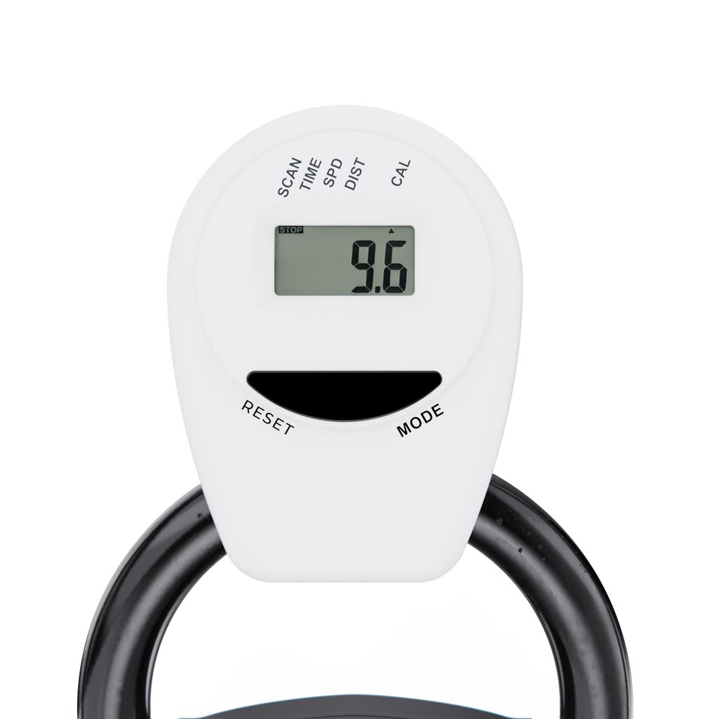 LCD-дисплей выводит всю необходимую информацию: время тренировки, скорость, пройденную дистанцию, количество сожжённых калорий и режим сканирования. Это позволяет отслеживать прогресс и корректировать нагрузку в реальном времени. Для работы консоли требуется 2 ААА батарейки (не входят в комплект).