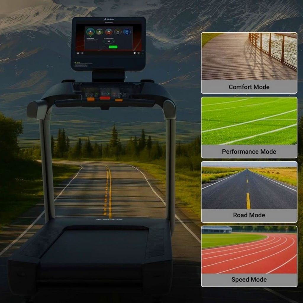 - Новая запатентованная система изменения амортизации бега - адаптивная дека FlexAir. В зависимости от режима тренировки за миллисекунды реагирует на изменение режима тренировки и обеспечивает плавный переход между режимами жесткости в течении 10 секунд. Основные режимы - комфортный, дорога, производительный, бег.