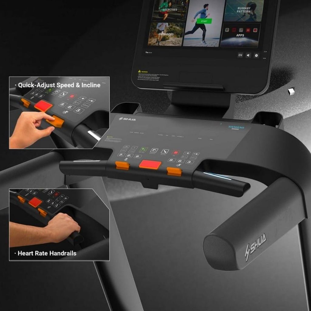 Профессиональная беговая дорожка SHUA T9100T подходит для интенсивного коммерческого использования и снабжена 32 дюймовым дисплеем с IPS матрицей. Дисплей имеет максимальное разрешение 1920х1080 позволяя просматривать фильмы Full HD. Система снабжена 16 Гб встроенной памяти и 2 Гб оперативной памяти DDR4 и работает на 6-ти ядерном процессоре. Дорожка также поддерживает беспроводные нагрудные датчики.