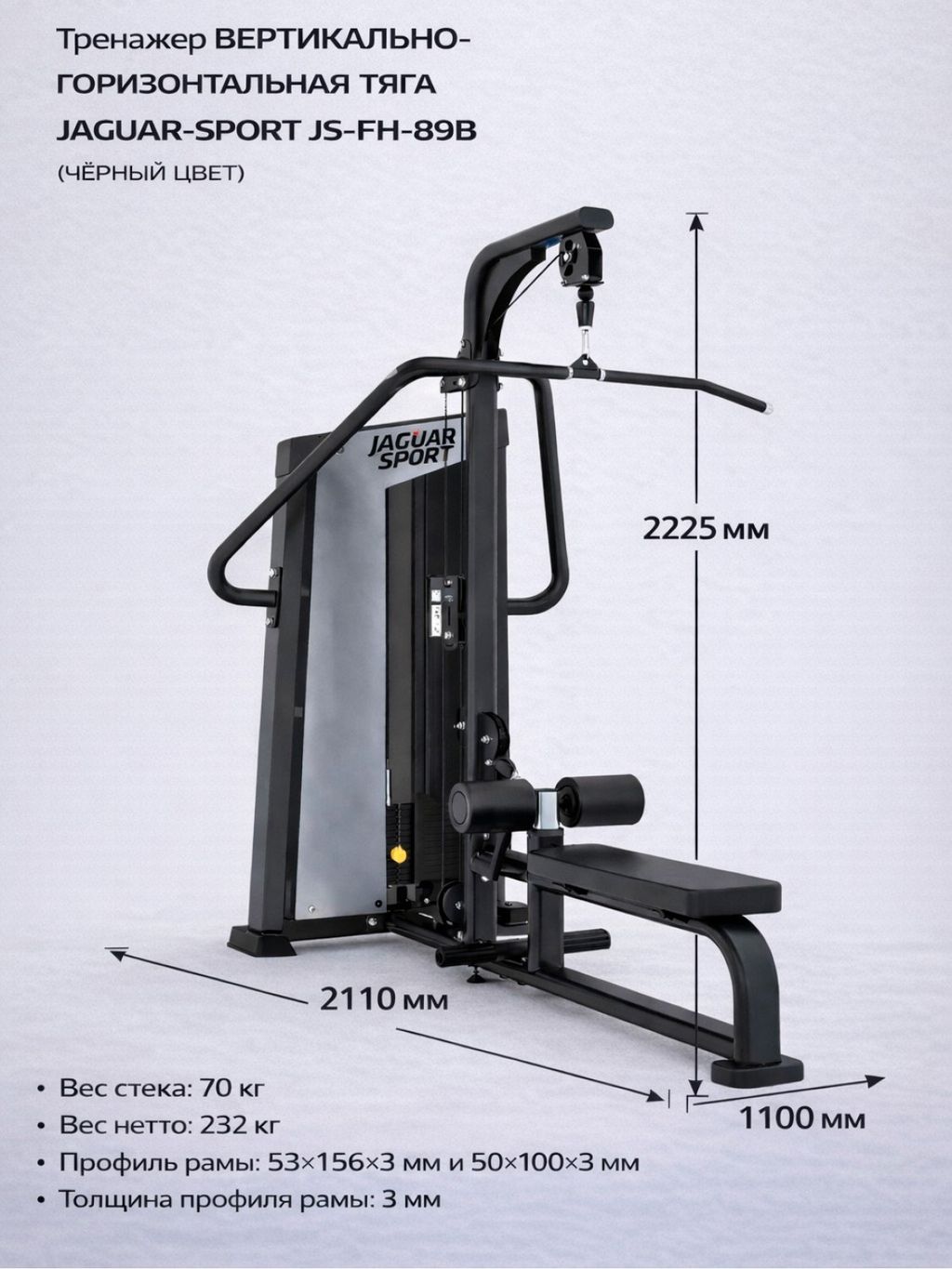 Вертикально-горизонтальная тяга JAGUAR-SPORT JS-FH-89B (Чёрный цвет), Стек 70 кг