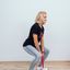 Фронтальные приседания: резина удерживается ногами на полу, верхняя часть цепляется на плечи. Руки скрестить на плечах так, чтобы они удерживали амортизатор на месте. Во время приседаний локти нужно поднимать как можно выше. Для тренировки новичков рекомендуют петли с нагрузкой до 54 кг.