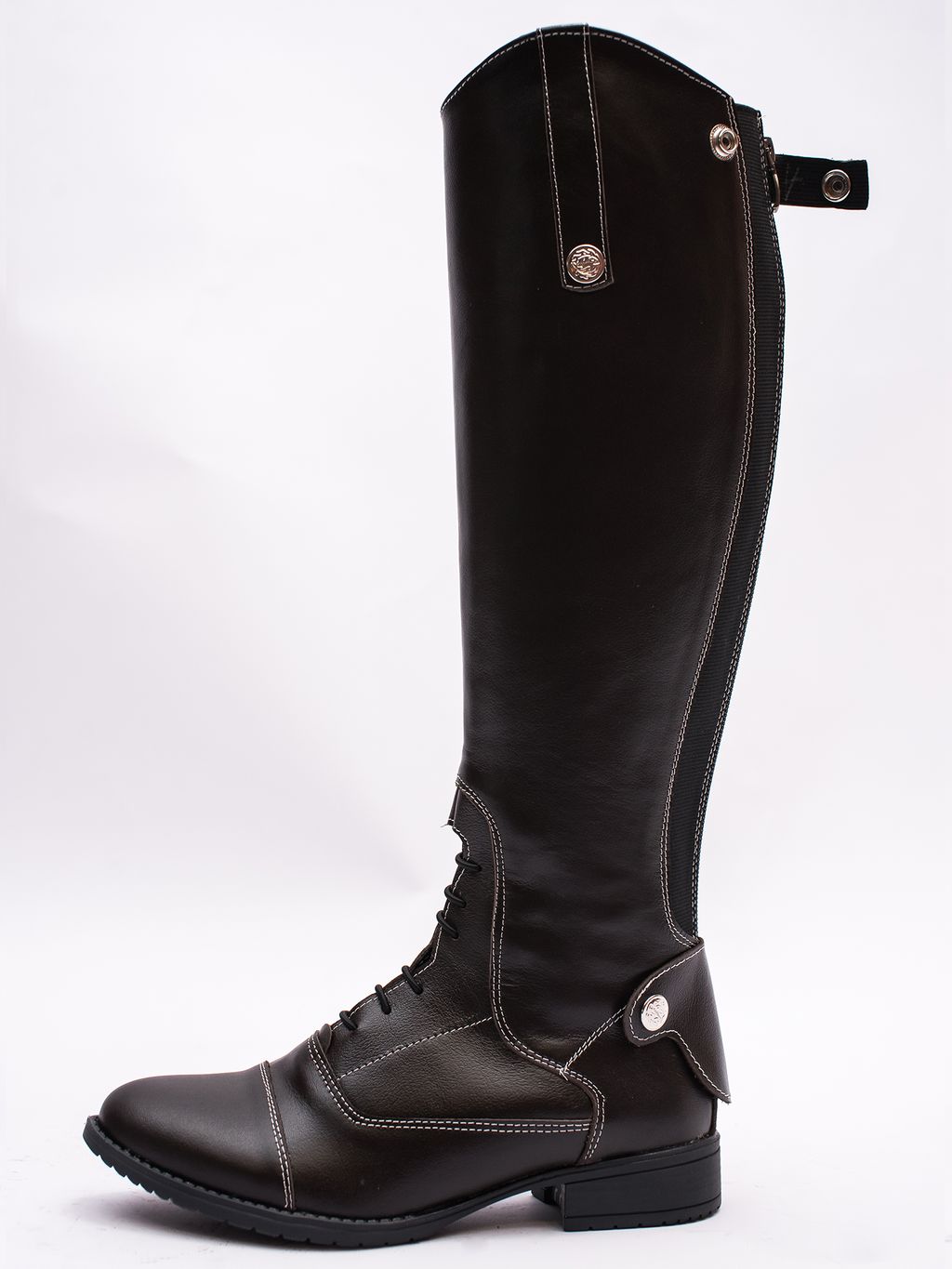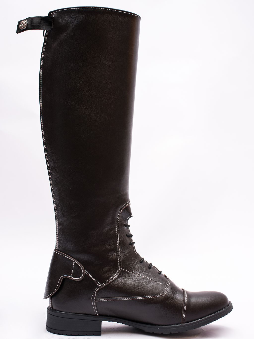 Демисезонные сапоги как для верховой езды, так и на каждый день. Выполнены из натуральной кожи. Замок молния сзади, вдоль него расположена резинка для большего комфорта.Короткая шнуровка и декоративная строчка подчеркивают неповторимый дизайн.
