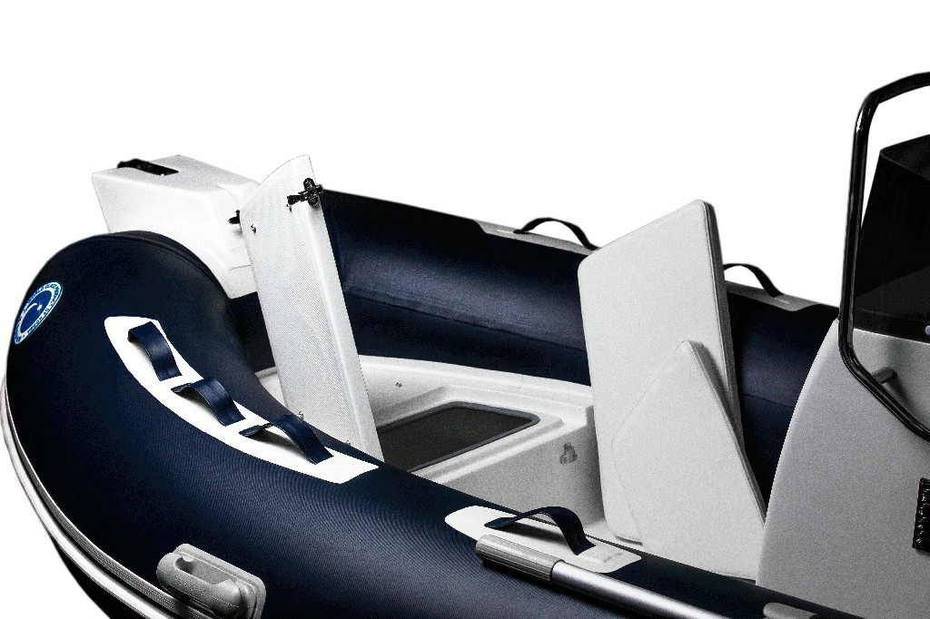 Лодка РИБ Stormline Luxe 420 изготовлена по заказу группы компании Globaldrive с использованием материалов HANWHA Polydreamer Co., Ltd., тканей ПВХ Wonpoong Corporation и клея Henkel производства Германии. Три секции жизнеобеспечения. На каждой секции установлен аварийно-подрывной клапан. Ручки для переноски позволят взять лодку с любой стороны. Нижняя часть секций и киль бронированы американской лентой Keel Shield Length. Можно смело вылетать на мель или берег по гальке. Теперь это реально.