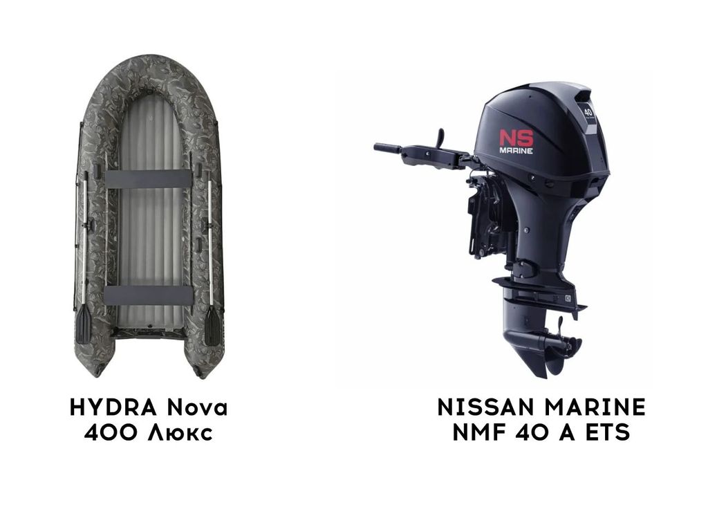 Лодка ПВХ HYDRA Nova 400 Люкс камуфляж + 4х-тактный лодочный мотор NISSAN MARINE NMF 40 A ETS