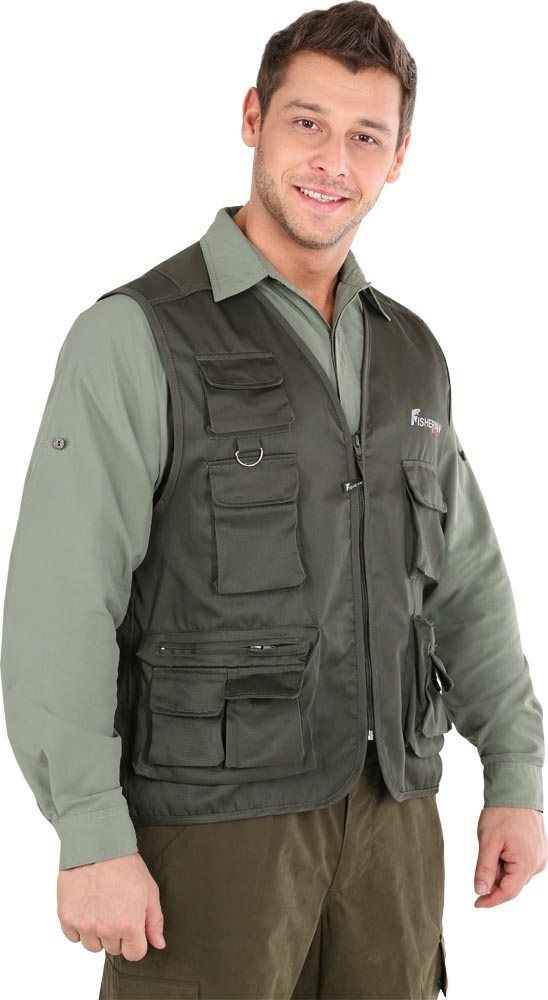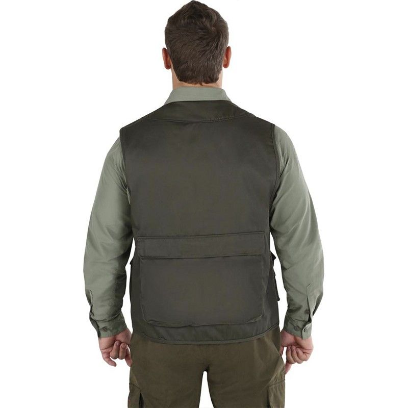 Жилет из смесовой ткани, что гарантирует усиленные свойства материала против проколов, истирания и разрывов. Данная ткань также имеет ещё одно немаловажное свойство, это долговечность, даже после многих стирок материал остаётся прочным и не тускнеет. Подкладка из сетки в верхней части спины, обеспечивает комфортную эксплуатацию жилета в жаркую погоду, а в нижней части спины располагаются объёмные карманы. Центральная застёжка на молнии. 9 грузовых карманов разного объёма и 2 накладных кармана на спине позволяют иметь при себе максимально-необходимое количество вещей для разных ситуаций во время активного использования. Множество карманов делает жилет практичным, позволяет хранить крючки, мушки, блёсна, вертлюжки и другие мелочи для рыбалки и не только. .