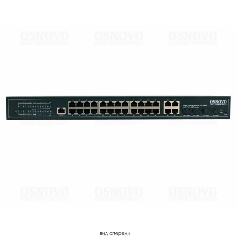 SW-8244/L(400W) Управляемый L2 PoE коммутатор Gigabit Ethernet на 24 RJ45 PoE + 4 x GE Combo Uplink порта. Порты: 24 x GE (10/100/1000 Base-T) с поддержкой PoE (IEEE 802.3af/at), 4 x GE Combo Uplink (RJ45 + SFP). Соответствует стандартам PoE IEEE 802.3af/at. Автоматическое определение PoE устройств. Мощность PoE на порт - до 30W. Суммарная мощность PoE до 400W. Встроенная грозозащита 3kV на порт. Питание: AC100-240V (415W). Встроенный БП. Монтаж в 19 - дюймовую стойку, крепление в комплекте. Размеры (ШхВхГ): 440 x 45 x 290мм. Рабочая температура: -10+55°С.