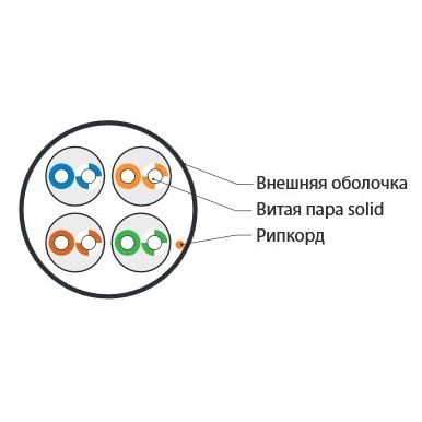 Hyperline UUTP4-C5E-S24-IN-LSZH-OR-305 (305 м) Кабель витая пара, неэкранированная U/UTP, категория 5e, 4 пары (24 AWG), одножильный (solid), LSZH, нг(А)-HF, -20°C +75°C