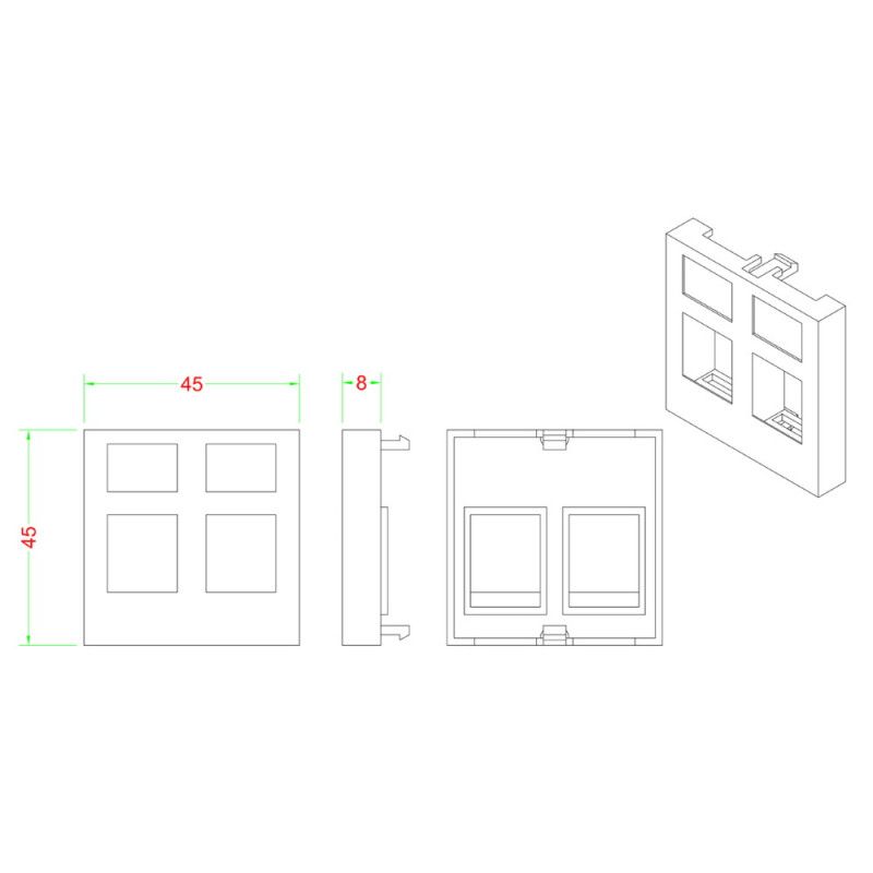 Hyperline SIP2-2N-M45-45 Вставка 45x45 (аналог Mosaic) для 2х модулей формата Keystone Jack, ROHS, белая
