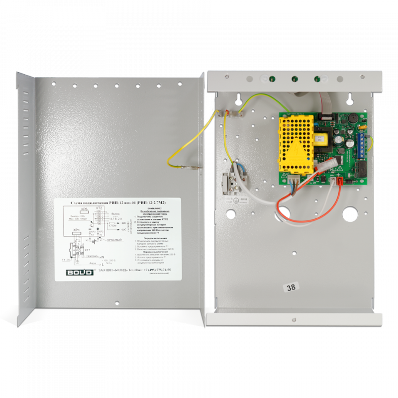РИП-12 исп.04 (РИП-12-2/7М2) резервированный источник питания, 12В, 2А, с микропроцессорным управлением. Звуковая и световая сигнализация режимов. Возможность установки аккумулятора 7Ач. Крышка под винт