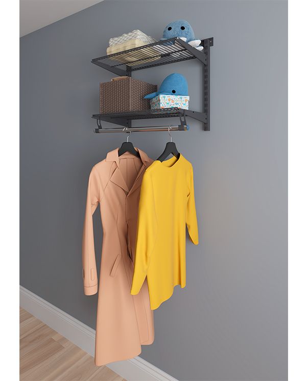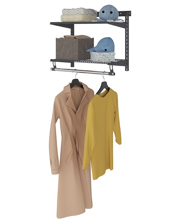 Рельс несущий ПРАКТИК Home GR-65 графит – 1 шт. Стойка ПРАКТИК Home GS-50 графит – 2 шт. Полка сетчатая ПРАКТИК Home GSh 60х30 графит – 2 шт. Кронштейн полки ПРАКТИК Home GBr-30 графит – 4 шт. Кронштейн штанги ПРАКТИК Home GRB графит – 2 шт. Штанга ПРАКТИК Home GR-60 - 1 шт.&