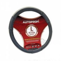 Чехол на руль "AUTOPROFI" AP-678BK/GY (L) натуральная кожа, 3 цветные вставки, черный/серый