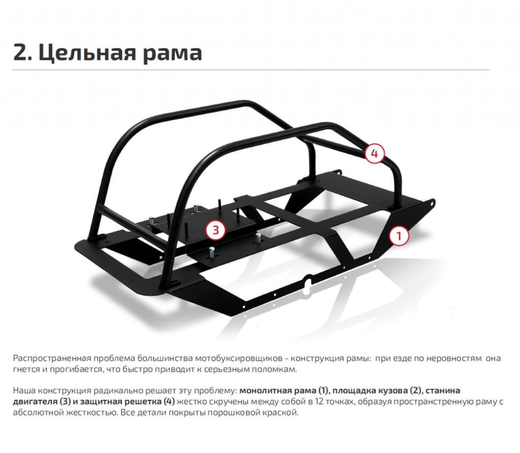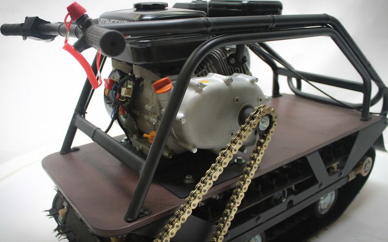 Проектируя модель 380 mini, мы старались сделать максимально компактный буксировщик. Получился не только самый компактный, но и самый сбалансированный и маневренный мотобуксировщик, который не смотря на неширокую гусеницу мало уступает в проходимости моделям с более широкой гусеницей, благодаря оптимальной развесовке. В качестве трансмиссии выступает не вариатор а редуктор, двигатель максимально смещен вперед, это обеспечивает идеальную развесовку и феноменальную управляемость. Оснащается двигателями мощностью 6 л.с. Перевозить 2х людей или 1го человека с грузом общей массой до 130 кг, в зависимости от глубины снежного покрова. Буксируя массу до 100 кг., с легкостью справляется со снежным покровом глубиной 35-40 см 1. МНОГОСЛОЙНАЯ КОНСТРУКЦИЯ РАМЫ Основные агрегаты такие, как двигатель и трансмиссия крепятся не к площадке из фанеры или пластика, а непосредственно к монолитной раме. Первый слой — монолитная рама. Второй слой — ламинированная фанера. Третий слой — станина двигателя и вариатора и защитный каркас. Все три слоя прочно скручены в 12 точках, что создает абсолютно монолитную конструкцию. 2. ИДЕАЛЬНЫЙ БАЛАНС Главным преимуществом моделей с редуктором, можно назвать их идеfльную развесовку. Связано это с тем, что сам редуктор намного легче и не требует установки массивной станины, но главное сам двигатель максимально смещен вперед, что дает правильное распределение веса и непревзойденную управляемость. 3. УСИЛЕННАЯ ЦЕПЬ И МЕХАНИЗМ НАТЯЖЕНИЯ Все буксировщики в базовой комплектации оснащаются мощной мотоциклетной цепью, с резиновыми сальниками. Во всех моделях предусмотрен простой и удобный механизм натяжения цепи. 4. ДВИГАТЕЛИ ZONGSHEN Являются полным конструктивным аналогом двигателей HONDA серии GX. За 5 лет мы убедились в действительно высокой надежности этих двигателей и можем за них поручиться. Все двигатели оснащены электрооборудованием, позволяющим подключить фару мощностью до 60 Вт.» 5. ГУСЕНИЦА COMPOSIT За сцепление со cнегом отвечает гусеница Composit. Тракторный механизм натяжения цепи, простой и имеет большой запас прочности.» 6. ПРОДУМАННАЯ КОНСТРУКЦИЯ РУЛЯ Во первых руль монолитный, а не двухсоставной. Это значит, что Вам не придется мучиться с барашками и шплинтами на морозе. При этом крепление руля находится максимально низко (на уровне гусеницы), т.е. сила, которую вы прикладываете для поворота не стремится опрокинуть буксировщик на бок, так как если бы руль крепился выше (например на уровне двигателя). Внешний вид товара, его комплектация и характеристики могут изменяться производителем без предварительных уведомлений. Описание носит справочно-ознакомите