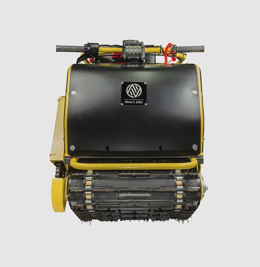 Мотобуксировщик ARTELV ЯМАЛЕЦ 215КЕ – это гусеничное транспортное средство с передним приводом, оснащенное 4-тактным двигателем мощностью 15 л.с. и вариатором. Он предназначен для перевозки грузов до 50 кг и людей на санях по снегу, имеет электростартер и LED-фару.